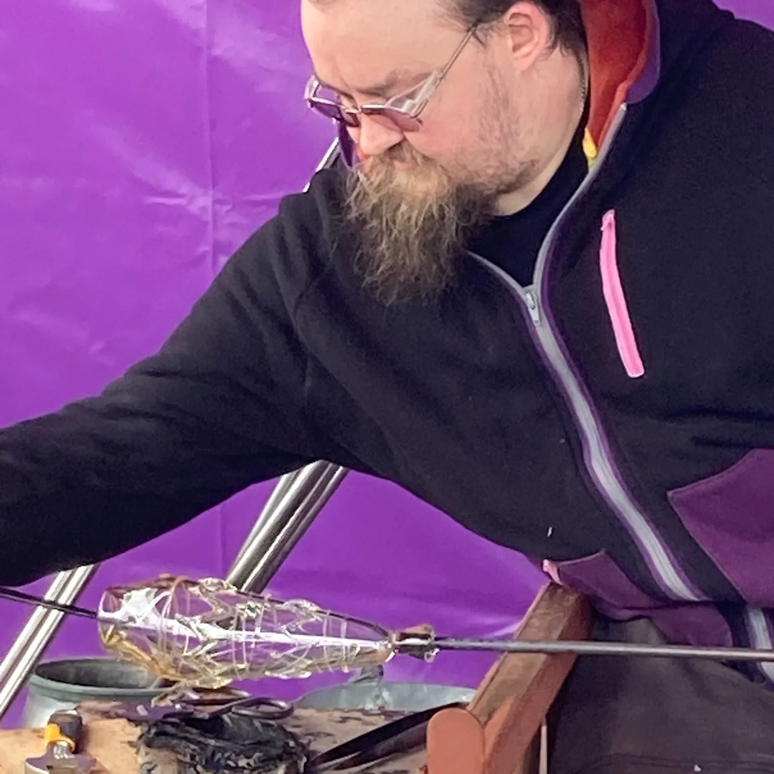 We have always been fascinated with history and historical glassmaking, particularly the Viking era. We have recently started attending Living History events attempting to create glass with our ‘Experimental Archeology’ bead furnace, and selling our historically inspired beads and glasswares.